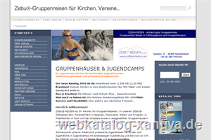 | Details: | ZEBU®-REISEN ist Ihr Partner für Gruppenfreizeiten. In unseren ZEBU®-Zeltcamps bzw. Feriendörfern in Spanien, Frankreich, Italien und Kroatien, in Mobilheimen in Rom und bei Grosseto sowie in ausgewählten Gruppenhäusern in Europa führen wir erfolgreich Gruppenreisen für Kirchen, Vereine, Verbände und Schulen durch.